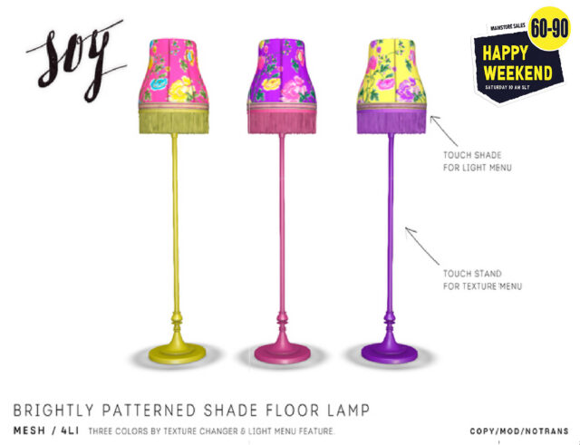 14/03/2026 Soy. Brightly Patterned Shade Floor Lamp – Happy Weekend Sale @ mainstore Furniture information New Release
